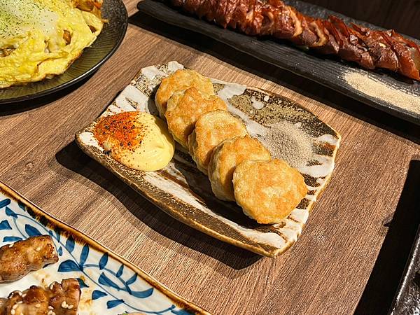 沾上日系美乃滋相當清爽的滋味,可以除去油膩感,再加上點七味粉更加開胃,這款很特別的料理頭一次吃到就在饕酒窩~