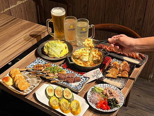 饕酒窩居酒屋招牌人氣串燒,雞、豬、牛通通有,一串串烤得香噴噴,把肉汁鎖起來,獨特鹽蔥吃起來特別美味,不油膩的可口烤物