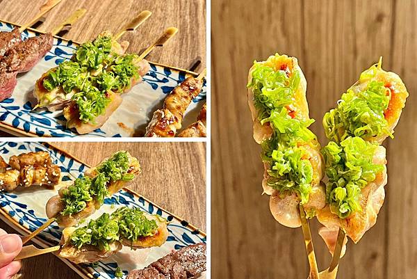 3.招牌人氣串燒,雞、豬、牛通通有,一串串烤得香噴噴,把肉汁鎖起來,獨特鹽蔥吃起來特別美味,不油膩的可口烤物,是居酒屋必點美味