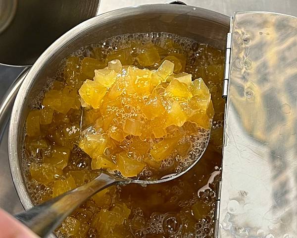 鳳梨學堂好喝的靈魂就是這個特製蜜鳳梨,以前台灣吃到的鳳梨偏酸偏澀,還會割舌頭~因此很多鳳梨都做成加工食品、或者糖漬後做成鳳梨糖漿/果醬