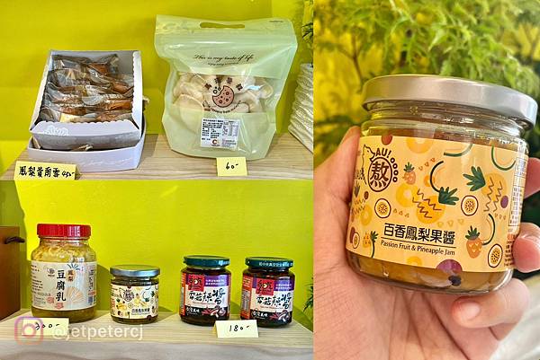 來自馬來西亞的青豆洋蔥脆薯片、手工製製作的鳳梨費南雪、拌飯拌麵都好吃的香菇辣醬、古早味鳳梨豆腐乳等好物,來趟鳳梨學堂通通都可以帶回家!