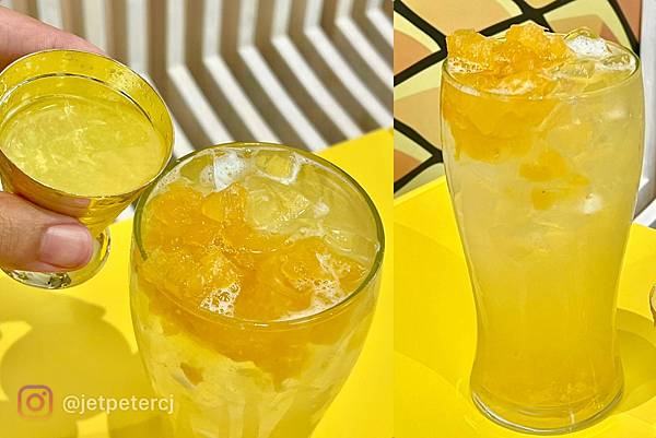 鳳梨學堂多款飲品一自排開,用料相當實在,黃澄澄的色澤相當吸睛,我覺得自己好像住在大鳳梨裡的海綿寶寶喔(誤)